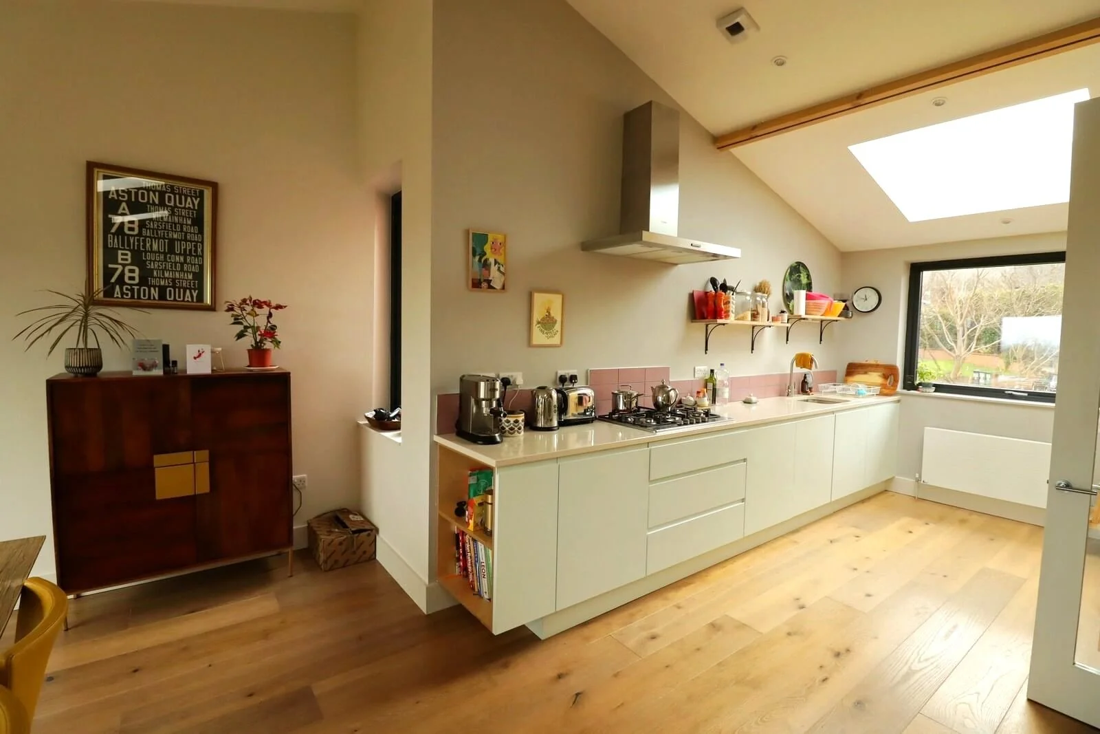 Fully reconfigured and refurbished upside down 4-bed detached family home in Dalkey. A new open plan kitchen dining living space was created at first floor level to take advantage of the beautiful views over Dublin Bay.